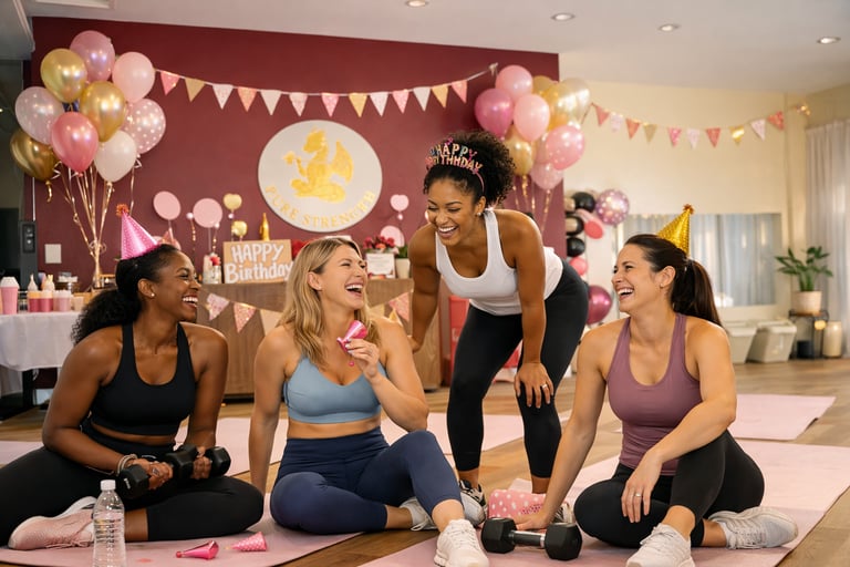 Celebrate your birthday in a fun, empowering way at Pure Strength Studio. Our private fitness parties are designed for women who want to move, sweat, stretch, and celebrate together in a supportive, uplifting space.